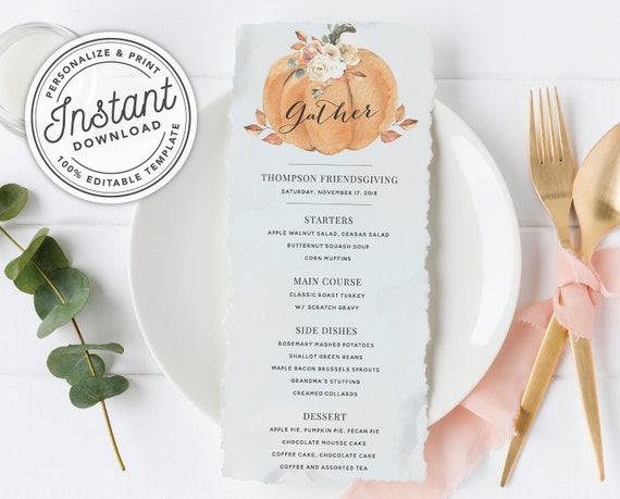 Printable Friendsgiving Thanksgiving Dinner Menu With Etsy